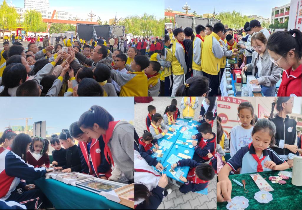 活动期间,国家桑树科技小院带来的桑树系列产品引起广泛关注。桑叶糕点、桑叶茶等药食同源产品深受现场师生欢迎,出现“几百个纸杯供不应求、糕点多次补充加工”的热烈场面。史建国老师和研究生为小朋友和现场来宾生动讲解桑树的功能用途和综合开发,并分发桑叶饼干、桑茶等产品供大家品尝,孩子们踊跃参与,赞不绝口。花艺社团展区同样热闹非凡,面对精美的压花作品,孩子们跃跃欲试,社团成员耐心指导,手把手教授固定花材的方法,引导孩子们完成平面花艺创作,压花艺术不仅带来直观的美学体验,也激发了孩子们对自然与创造的好奇心。