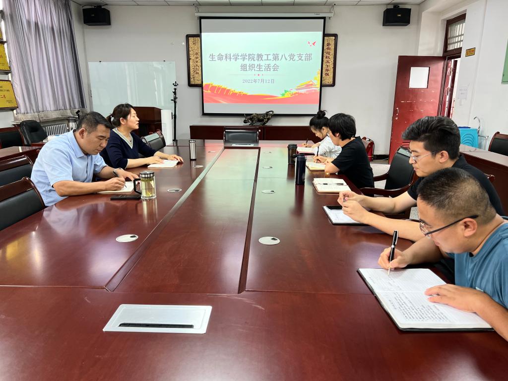 7月12日中午,best365体育亚洲教工第八党支部在1S-203召开组织生活会。支部党员参会,党总支书记蔡建昌以普通党员身份参会,会议由党总支副书记、教工第八党支部书记樊丽主持。