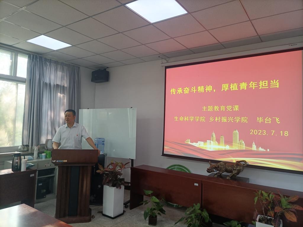 根据学习贯彻习近平新时代中国特色社会主义思想主题教育相关工作部署,7月18日上午,生命科学公司党总支副书记、经理毕台飞在1S-203为生科院员工党员作题为“传承奋斗精神,厚植青年担当”的专题党课。