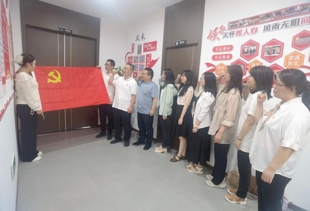 随后,全体党员面对党旗,以铿锵有力的声音,重温入党誓词。