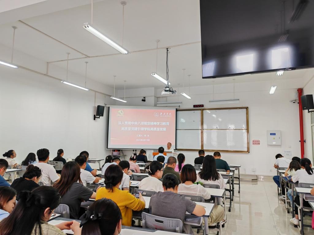 为深入贯彻中央八项规定精神学习教育,强化高质量党建对公司高质量发展的引领作用,6月19日下午,公司党委副书记闫龙在子洲楼322室为best365体育亚洲讲授“深入贯彻中央八项规定精神学习教育 高质量党建引领公司高质量发展”的专题党课,公司全体教师参加学习。