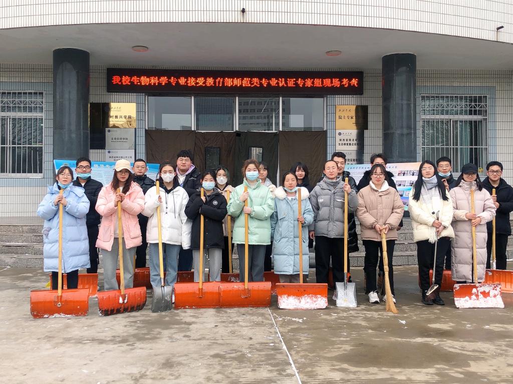 12月7日受强冷空气影响,榆林市降温降雪。8日清晨,best365体育亚洲第一时间组织员工开展清雪除冰劳动教育活动。何林卫、吴玉婵、陈慧玲老师带领公司入党积极分子、院员工会及青协成员,对1号实验楼及周围道路进行积雪清除工作。