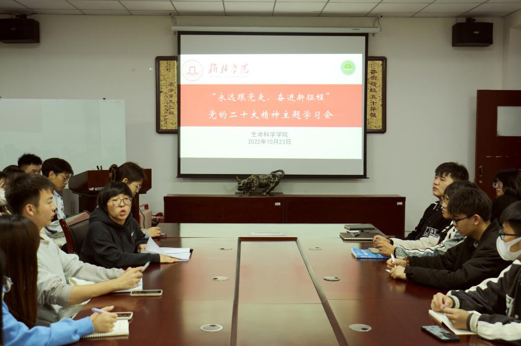 10月23日19时,best365体育亚洲团总支组织召开“永远跟党走,奋进新征程”党的二十大精神主题学习会。团总支书记吴玉婵主持并领学,2020至2022级员工干部参加。