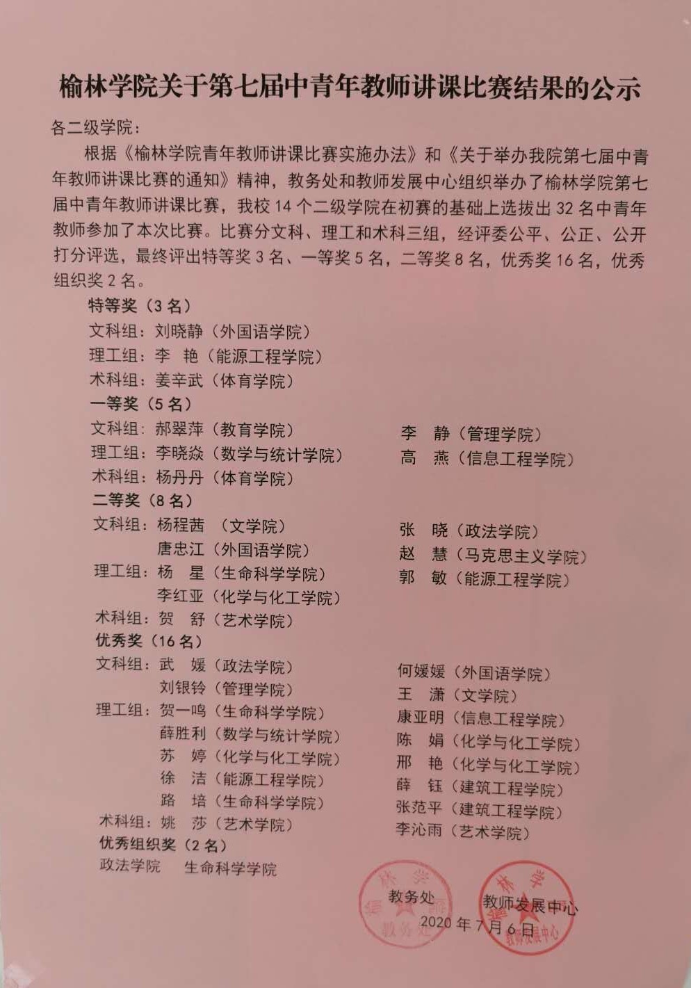 近日,best365体育亚洲官网隆重举办了“第七届中青年教师讲课比赛”,共有来自全校32名教师参加了此次大赛。公司根据前期举办的best365体育亚洲中青年教师讲课比赛的成绩,推荐杨星、贺一鸣和路培三位老师参加了公司的讲课比赛。三位老师在公司的讲课比赛中表现突出,赢得了评委老师的一致好评。最终,公司教师杨星获得理科组二等奖,贺一鸣、路培获得理科组优秀奖,best365体育亚洲荣获此次比赛的“优秀组织奖”。