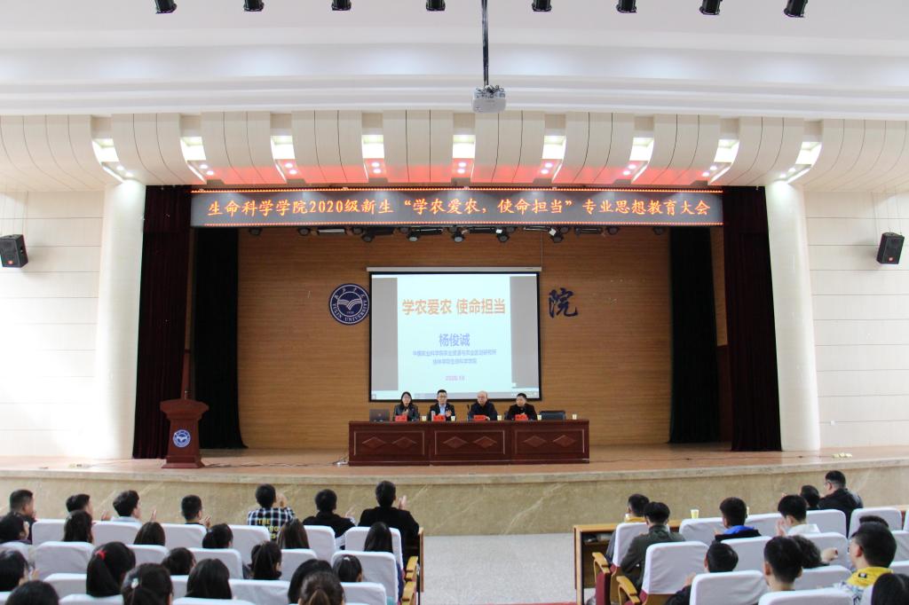 2020年10月13日14:30,best365体育亚洲在图书馆二楼报告厅召开了“2020级新生‘学农爱农,使命担当’专业思想教育”大会。生命科学公司党总支书记董建刚、党总支副书记樊丽、党总支秘书何林卫、团总支书记吴玉婵以及2020级辅导员、班主任和20级全体新生参加了此次会议,大会由党总支副书记樊丽主持。