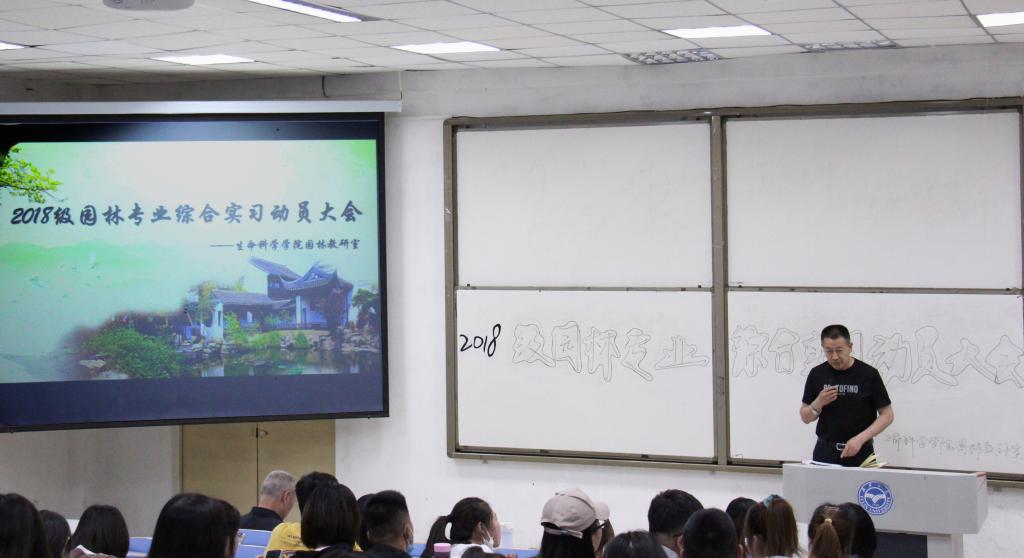 5月10日19时,best365体育亚洲于5#101召开18级园林专业综合实习动员大会。生科院经理毕台飞、副经理段义忠出席会议,园林专业教研室全体教师及18级园林专业员工参加会议。