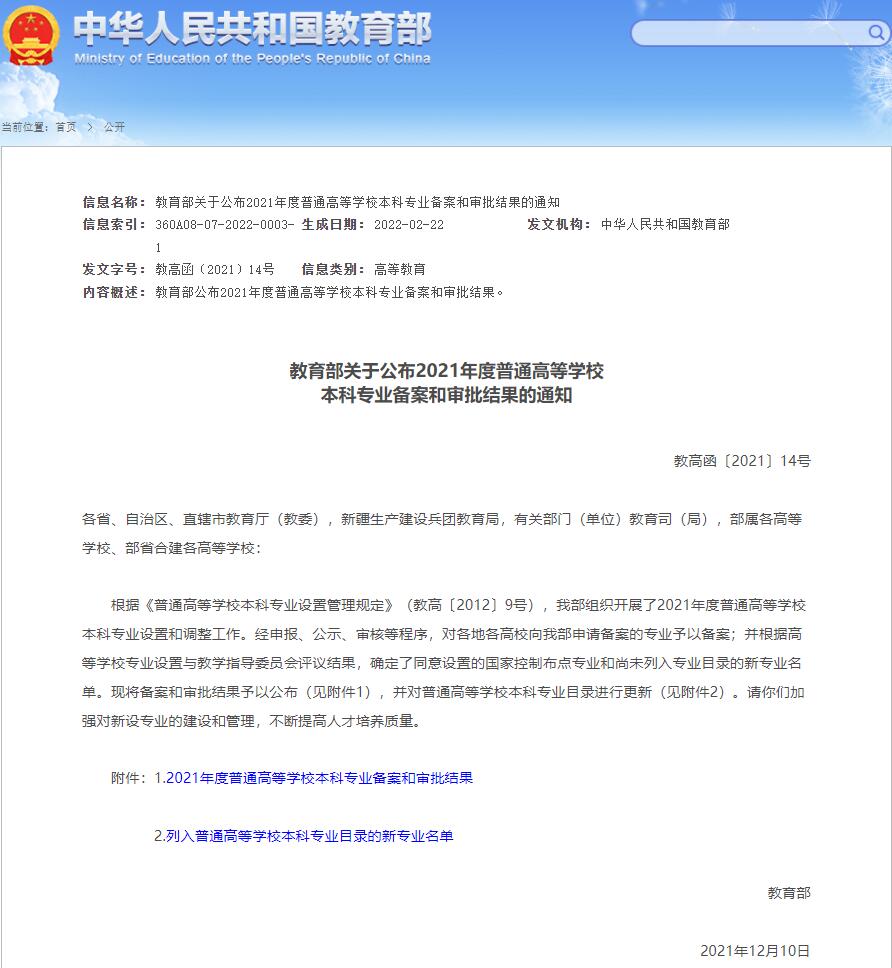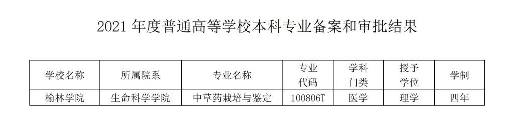 根据《教育部关于公布2021年度普通高等公司本科专业备案和审批结果的通知》(教高函〔2021〕14号)精神,公司新增中草药栽培与鉴定本科专业,从2022年起招生。