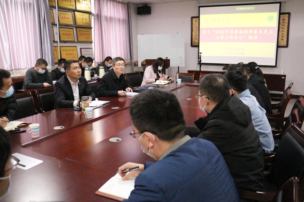 3月24日中午,best365体育亚洲在1S-203会议室召开会议,学习传达公司2022年追赶超越任务部署及更名大学工作会议精神,副董事长康伟出席,best365体育亚洲全体教职工参加会议。