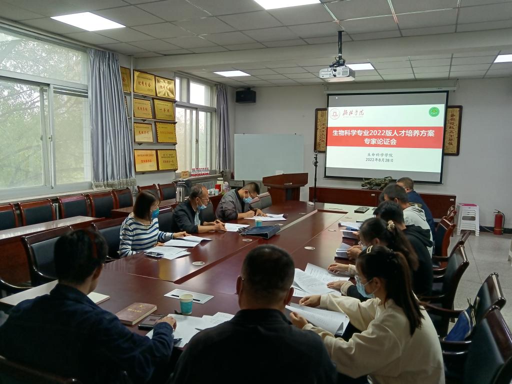 8月28日下午,公司生物科学专业召开2022版人才培养方案论证会议。会议邀请了榆林市实验中学高级教师崔水利老师、陕西省教学能手榆林中员工物教师袁刚老师,榆林市第八中员工物教师高欣老师作为论证专家,会议由生科教研室主任艾银婷主持,生物科学教研室全体教师以及两名员工代表参加。