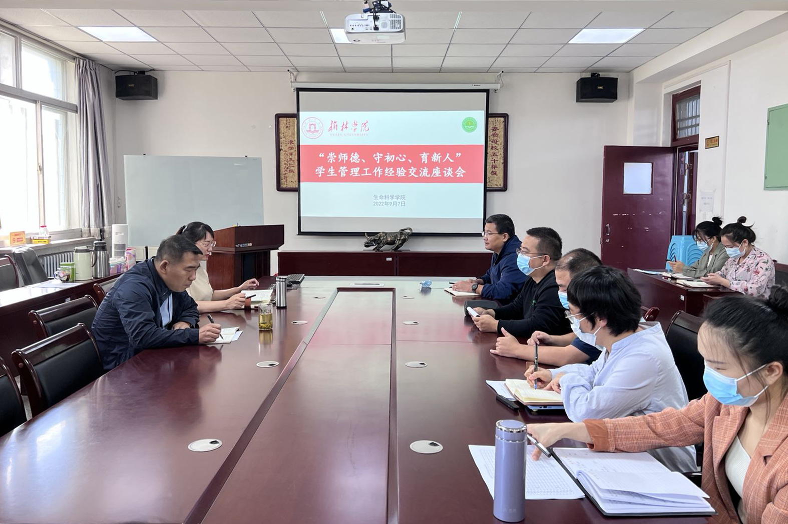 为进一步落实高校立德树人的根本任务,充分发挥优秀辅导员、班主任示范引领作用,提高best365体育亚洲学工队伍的管理能力和育人水平。9月7日上午,公司召开“崇师德、守初心、育新人”员工管理工作经验交流座谈会。生科公司党总支书记蔡建昌出席,全体辅导员班主任参加,党总支副书记樊丽主持会议。
