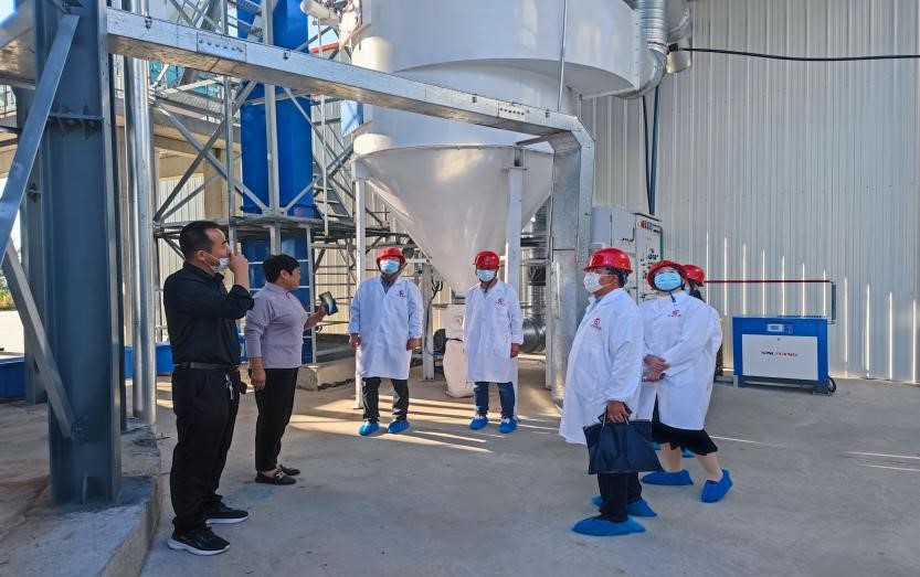 在华西牧业总经理杨海珍女士及公司相关技术负责人的陪同下,段义忠一行先后参观了华西牧业饲料生产车间、品管留样室和化验室,详细了解了华西牧业饲料生产流程、品控规程、发展现状和未来规划。