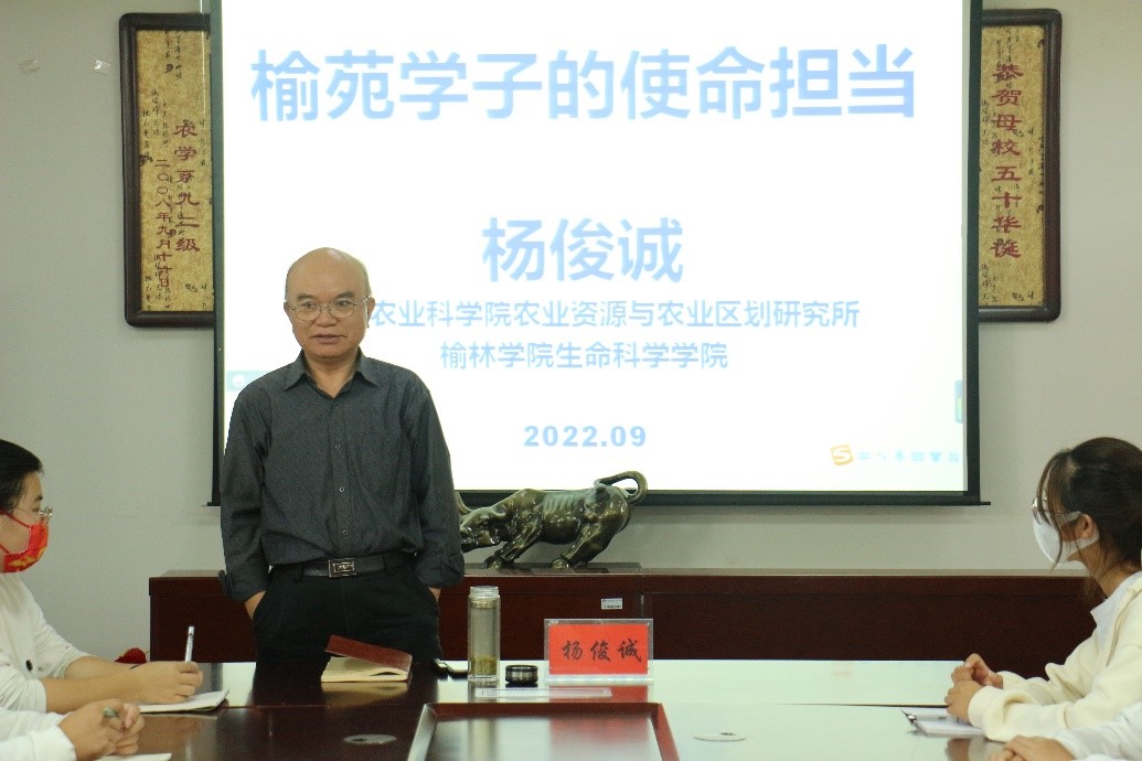 会上,杨俊诚为2022级新生做入学思想教育报告。他从对榆苑的认识、榆苑学子的使命以及责任担当三个方面,就个人的成长和求学经历,鼓励年轻的生科学子刻苦努力、追求上进;他还围绕“人”、“德”、“责”三字,告诫新生要德以明理、责以担当,谨记“求学”之初心,更要立足榆林、胸怀祖国、放眼世界,赓续公司“奋斗”精神,为国家粮食安全和乡村振兴事业做出生科人应有的贡献。