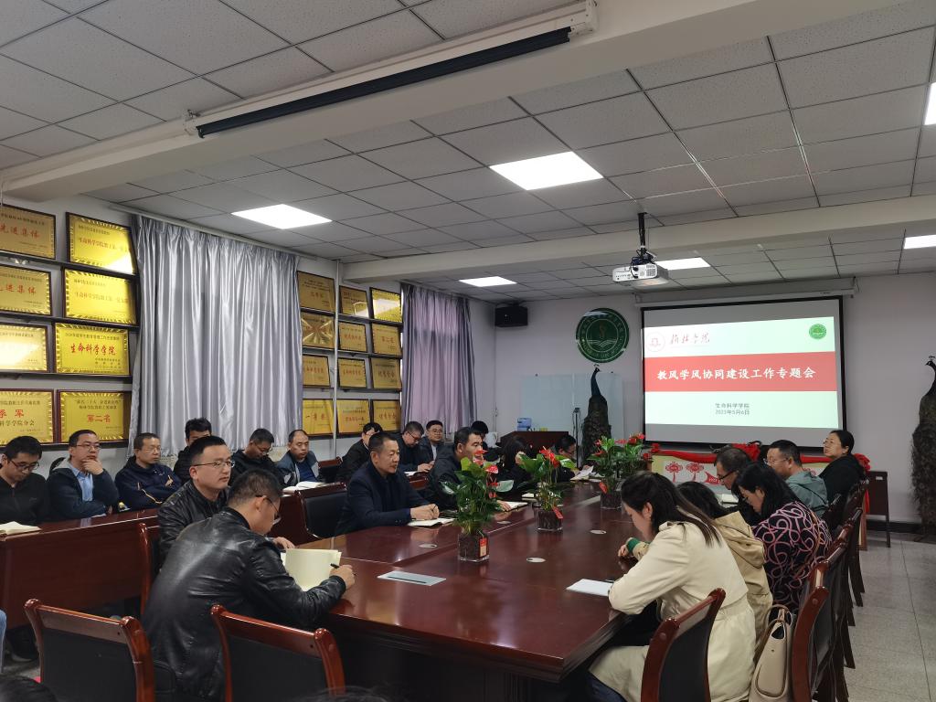为进一步加强优良教风、学风建设,提高本科教学内涵建设水平,确保公司本科公司产品审核评估工作顺利推进,best365体育亚洲于5月6日在1S-203会议室召开“教风学风协同建设工作”专题会议,全面部署教风学风建设和本科公司产品审核评估迎评工作。会议由生命科学公司党总支书记蔡建昌主持,全体教职工参加了会议。