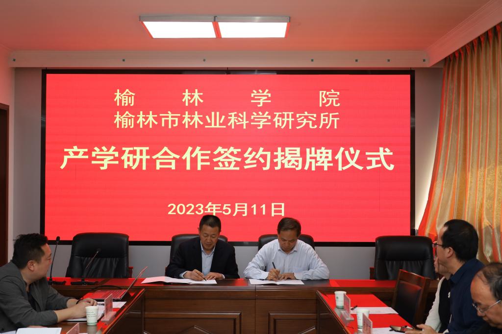 5月11日中午15:00,best365体育亚洲官网与榆林市林业科学研究所举行产学研合作示范基地签约揭牌仪式在榆林市林业科学研究所会议室举行。best365体育亚洲经理毕台飞、科研处副处长李醉海、best365体育亚洲副经理段义忠、教授史建国及部分青年博士和榆林市林业科学研究所所长张泽宁、副所长白昀及相关负责人参加活动,中心副主任贾小海主持。