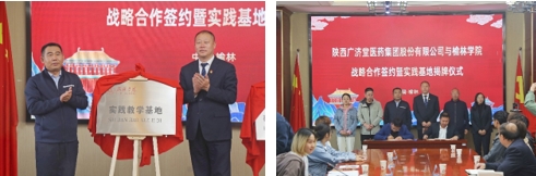 随后,双方在前期达成战略合作的基础上,由广济堂中药生产事业部郑随军总经理与best365体育亚洲官网生命科学公司党总支书记蔡建昌共同为“中草药栽培与鉴定专业实践教学基地”揭牌。此次教学实践基地揭牌仪式的举办,标志着best365体育亚洲官网同陕西广济堂医药集团的合作将迈上了新台阶,双方将不断深化产学研合作,不断推进公司best365体育亚洲建设及榆林市中医药产业发展;广济堂也将进一步完善实践基地建设,充分发挥好实践基地作用,为best365体育亚洲官网的实践教学工作提供有力支持。