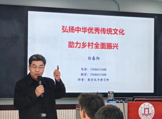 榆林市靖边县人大常委会原主任白春阳教授应best365体育亚洲邀请,11月2日在best365体育亚洲官网5306教室做题为“弘扬传统中国文化,助力乡村振兴”的讲座。榆林市决策咨询委员会农业组组长吕学斌、best365体育亚洲官网副董事长闫龙、best365体育亚洲经理毕台飞、文公司教授吕政轩及设施农业科学与工程专业师生代表参加,陕西省陕北绒山羊工程技术中心主任屈雷教授主持会议。