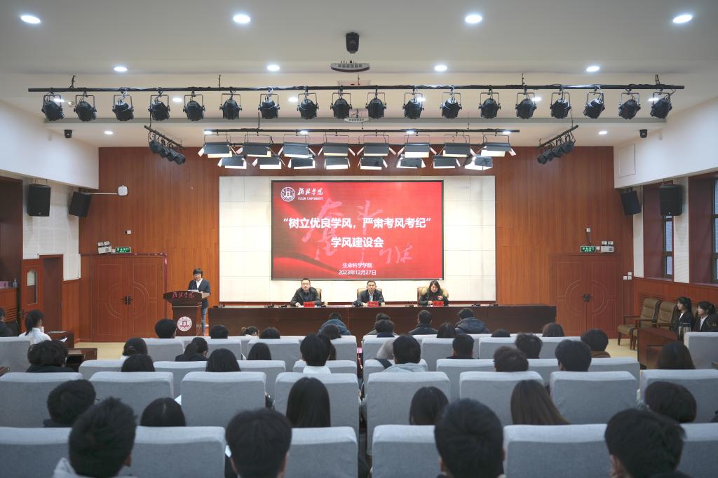 党总支副书记樊丽强调了加强学风建设的重要性和必要性,希望同学们树立正确学习动机,端正学习态度,掌握学习规律,提高学习质量,同时要做到遵守教学管理秩序、加强宿舍文明建设、各班级员工干部在学风建设中要起到桥梁和纽带作用,带动班级同学开展形式多样的活动,使每位同学积极投入到生科院的学风建设中,为进一步创建优良学风打下坚实基础。