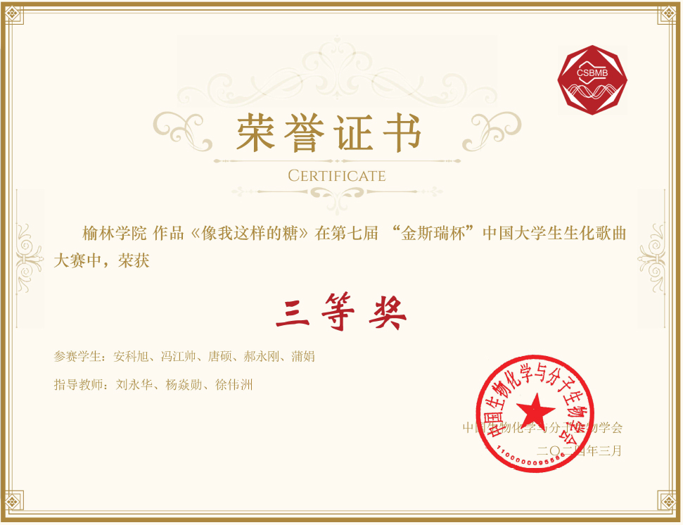 3月23日,由中国生物化学与分子生物学会主办,中山老员工命科学公司承办的第七届“金斯瑞杯”中国老员工生化歌曲大赛落下帷幕,来自南京大学、西安交通大学、中山大学等60余所高校参赛。best365体育亚洲员工参赛作品《像我这样的糖》荣获三等奖。