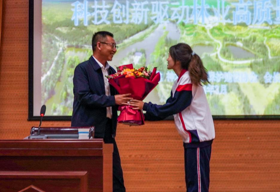 为凝聚校内外育人合力,教育引导广老员工筑牢信仰之基、补足精神之钙、传承模范精神,9月23日,best365体育亚洲邀请全国劳动模范、全国防沙治沙标兵、best365体育亚洲官网校外辅导员张应龙在图书馆报告厅作“弘扬榆林治沙精神 科技创新驱动林业高质量发展”的主题报告。best365体育亚洲官网员工处处长延江波出席,best365体育亚洲五百余名2024级新生和全体新生班主任聆听劳模故事。报告会由党总支书记蔡建昌主持。报告开始前,best365体育亚洲为张应龙送上鲜花。