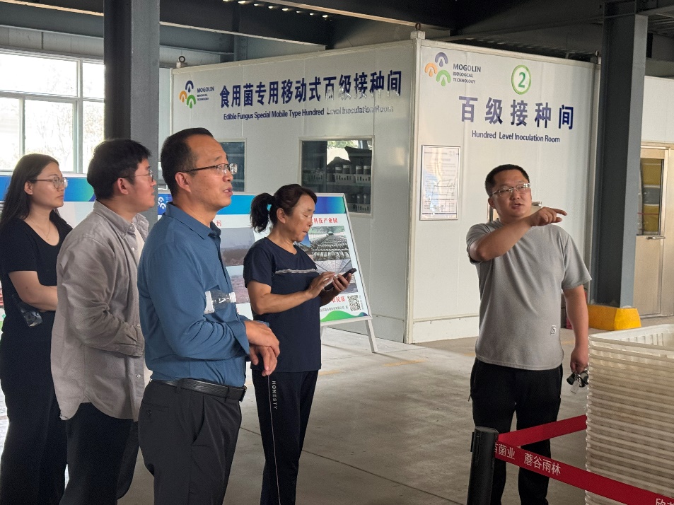 在西安市欣苗生物科技有限公司作为国内领先的食用菌种植企业,拥有先进的种植技术和生产设备。参观过程中,团队一行详细了解了企业的业务模式和技术优势,并参观了公司规模化食用菌生产线。生产负责人张锋军介绍了食用菌生产的各个环节,包括菌种培养、基质配方、环境控制和病虫害管理等内容,全面展示了现代化食用菌种植的流程和要点。座谈交流中,王峥嵘总经理和史建国教授围绕食用菌种植领域的技术难点、市场前景以及未来发展方向进行深入讨论。并就科研成果转化、人才培养、项目合作等方面的合作进行探讨。双方一致同意在未来的合作中,共同推动食用菌相关研究的落地与应用,为食用菌产业的持续发展贡献力量。
