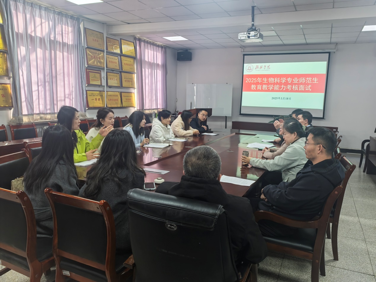 为做好best365体育亚洲生物科学专业大四年级的师范生公司产品能力考核工作。2025年3月18日上午,生物科学教研室在子洲楼307、308、5101及5308教室组织开展了“师范生公司产品能力培养过程性考核”。面试由教研室主任匙占库主持,生物科学专业教师以及四位校外中员工物教师共同参与。