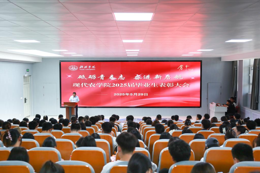 表彰大会在庄严的国歌声中启幕。现代农公司党总支书记蔡建昌作育人成果汇报,系统梳理毕业生高质量就业、考研深造等基本情况。党总支副书记樊丽宣读2025届考研优秀代表、优秀毕业生、优秀员工干部等表彰名单。