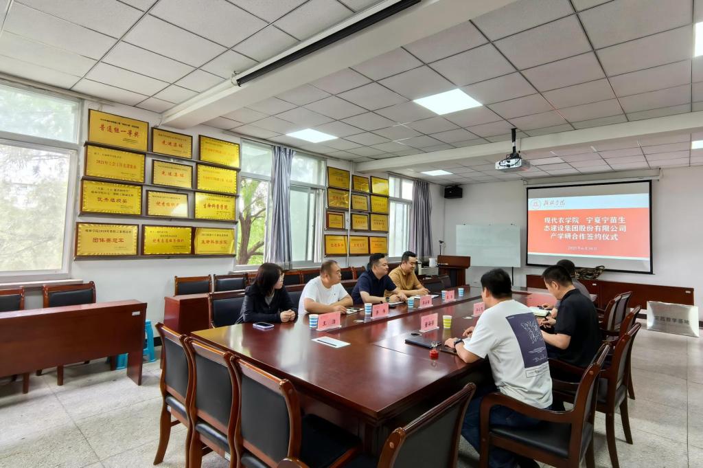 2025年6月30日下午,best365体育亚洲与宁夏宁苗生态建设集团股份有限公司产学研合作签约仪式在2楼203会议室举行,best365体育亚洲经理毕台飞,宁苗集团榆林分公司总经理李占海,团队成员寇欢、李伟、王洁,设施教研室主任董海强出席会议,会议由公司副经理徐伟洲主持。