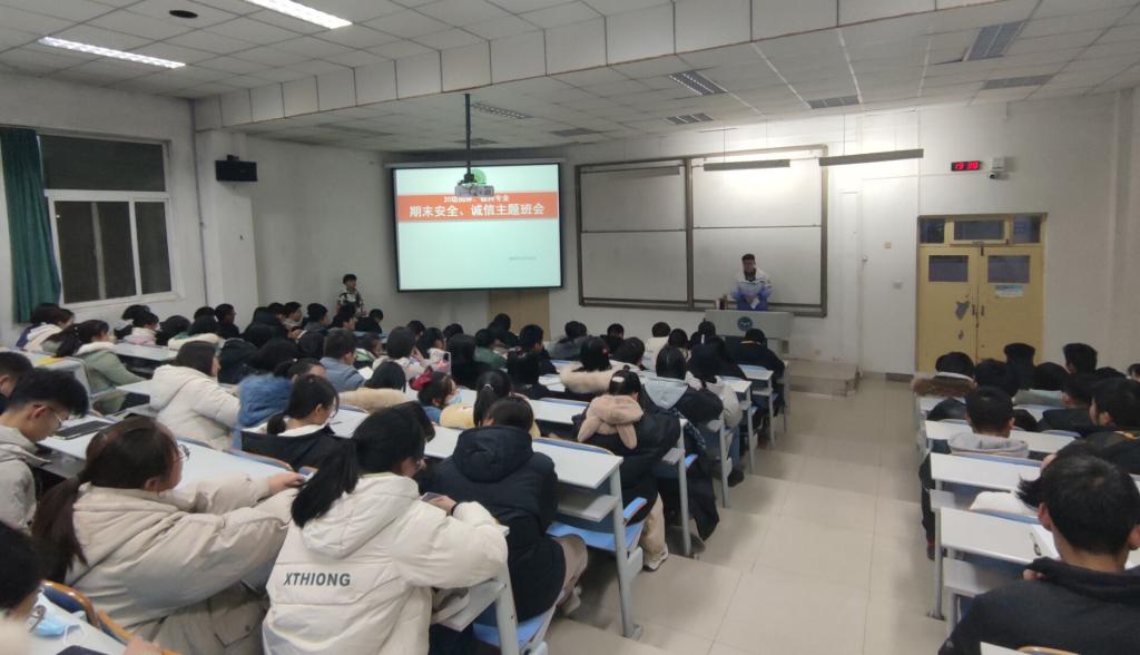 12月23日19时,公司20级园林、植科专业员工于5202教室召开“诚信应考、安全度假”主题班会,辅导员杨焱勋主持班会。