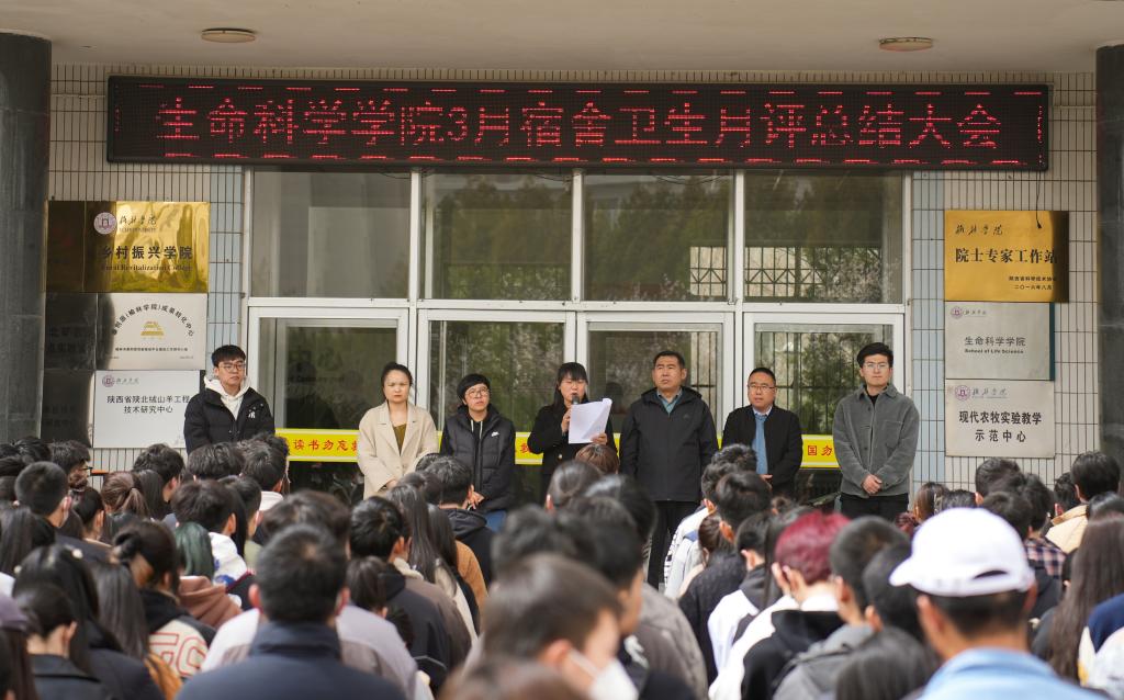 3月22日中午,best365体育亚洲在1#实验楼下举行3月份宿舍卫生月评总结大会。党总支书记蔡建昌、党总支副书记樊丽、党总支秘书何林卫、团总支书记吴玉婵,辅导员陈慧玲、封少博出席,各班班长、团支书及各宿舍舍长参加,大会由辅导员杨焱勋主持。
