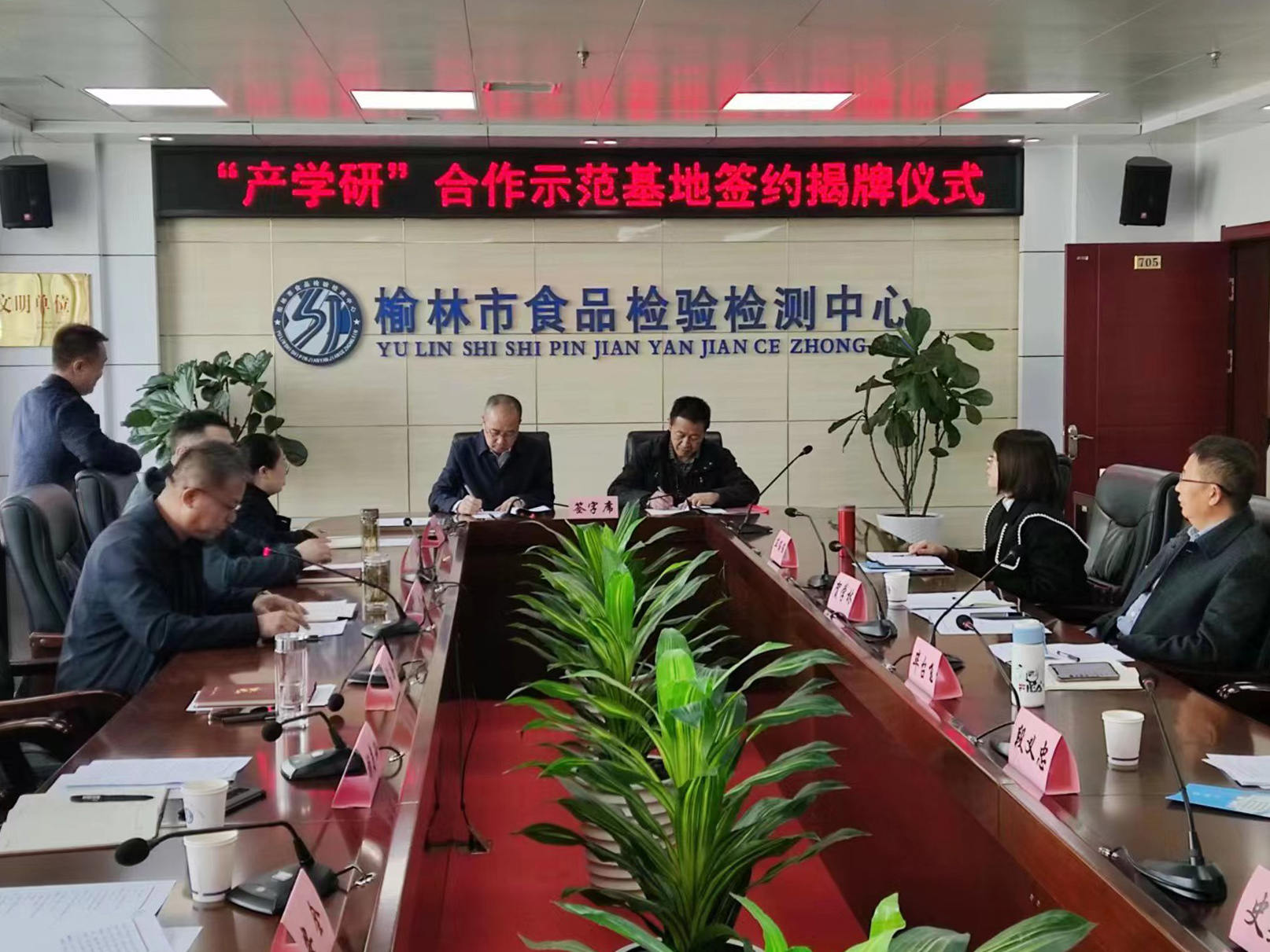11月3日上午09:00,best365体育亚洲与榆林市食品检验检测中心举行产学研合作示范基地签约揭牌仪式在榆林市食品检验检测中心7楼会议室举行。best365体育亚洲经理毕台飞、副经理段义忠,榆林市食品检验检测中心主任马腾、副主任贾小海、胡美玲、曹建伟参加活动,部分专家学者及相关负责人、各检验技术带头人参加,会议由贾小海主持。