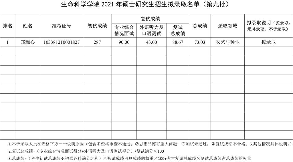 2021年硕士研究生招生拟录取名单公示(第九批)