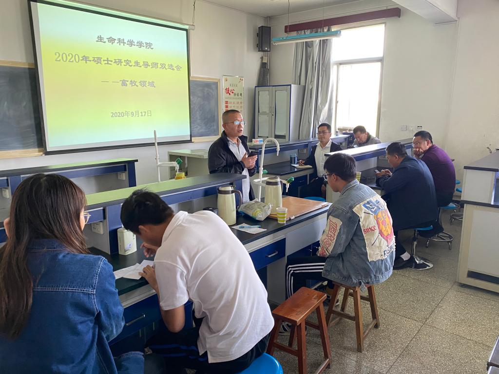 2020年9月17日下午2点30分,best365体育亚洲农艺与种业领域和畜牧领域2020级硕士研究生导师双选会分别在203会议室和311教室召开。研究生处处长张雄、best365体育亚洲经理卜耀军、陕西省陕北绒山羊工程技术研究中心主任屈雷、best365体育亚洲副经理孙旺斌、best365体育亚洲副经理段义忠、公司硕士研究生导师及2020级硕士研究生参加会议。